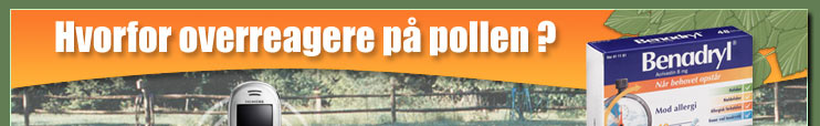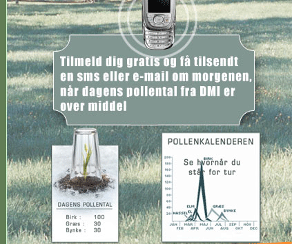 Her kan du tilmelde dig Benadryls (acrivastin) gratis pollenvarsel. Omkring kl. 7.30 om mor-genen i pollensæsonen får du et varsel enten på email eller sms, når pollentallet iflg. Astma- Allergi Forbundet og Danmarks Meteorlogiske Institut forventes at blive særligt højt.